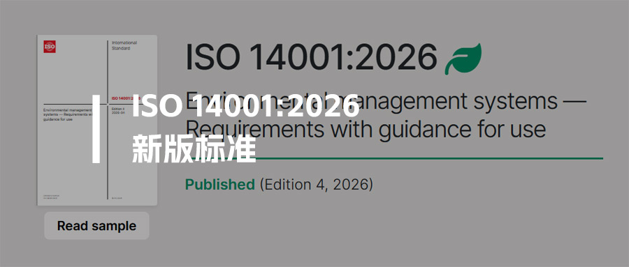 国际标准化组织于2026年4月15日正式发布了新版标准ISO 14001:2026,核心修订包括强制纳入气候变化与生物多样性要求、强化领导作用与终身责任、新增变更管理策划、扩展供应链与生命周期管控,并将绩效评价重点从合规转向实际环境绩效。